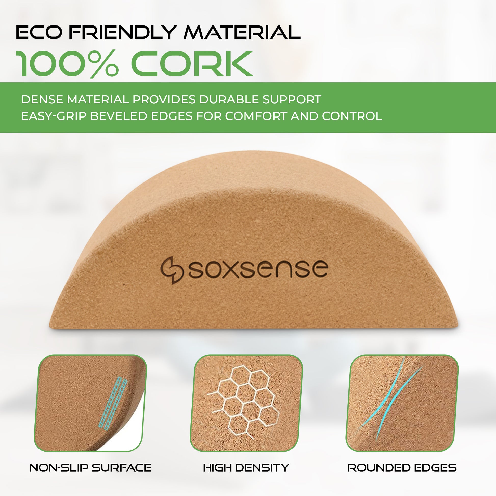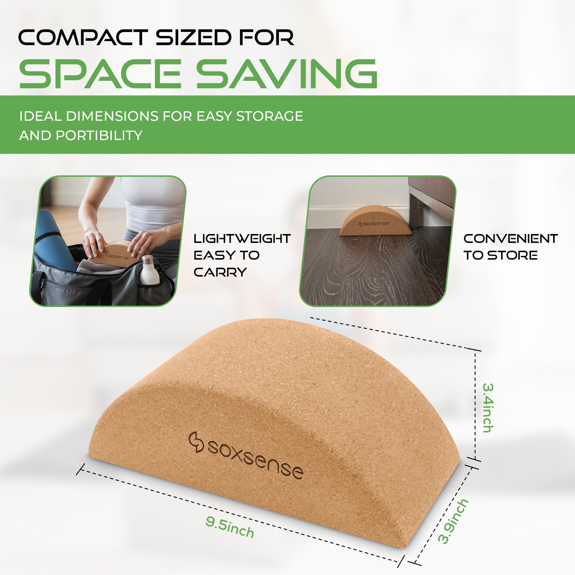 - Compact & Natural Support Crafted from eco-friendly cork, the Soxsense Half-Moon Yoga Block offers firm, slip-resistant support even during challenging poses. Its natural texture ensures a secure grip and grounded feel—perfect for stretching, balancing, or deepening your practice.